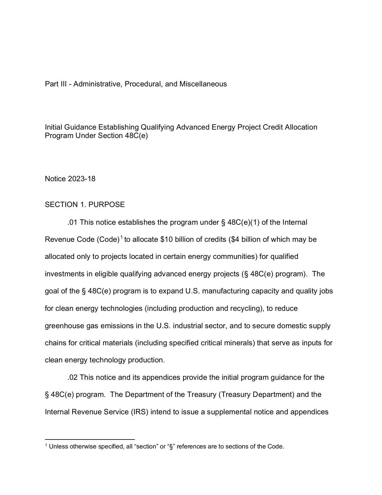 48C: Notice 2023-18 – Initial Guidance Establishing Qualifying Advanced Energy Project Credit Allocation Program Under Section 48C(e)