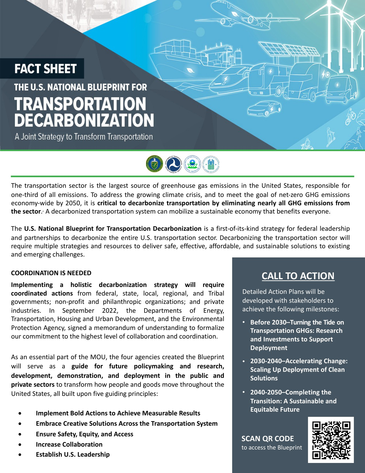 The U.S. National Blueprint for Transportation Decarbonization: Fact Sheet The U.S. National Blueprint for Transportation Decarbonization: Fact Sheet Nick Nigro2023-01-01T00:00:00-05:00 The U.S. National Blueprint for Transportation Decarbonization: Fact SheetNick Nigro2023-01-01T00:00:00-05:00