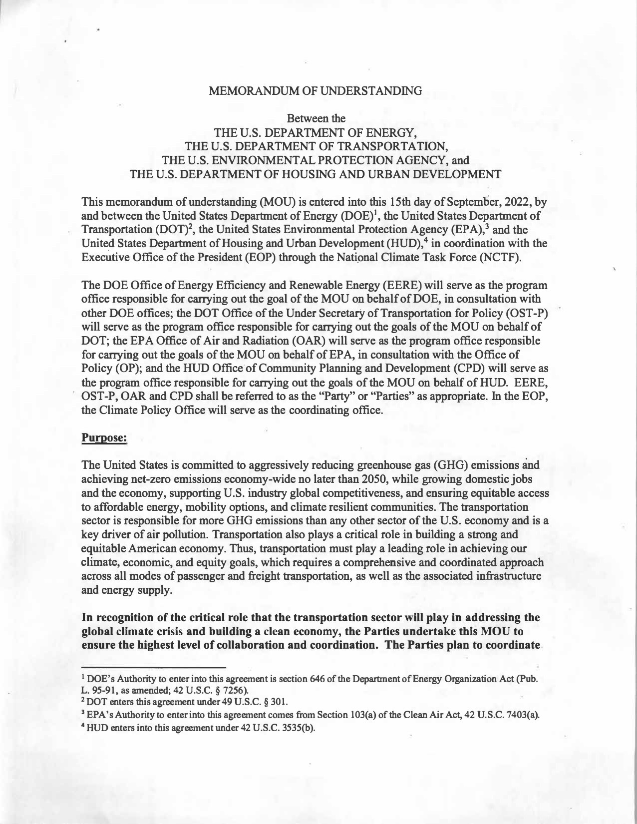 Memorandum of Understanding between DOE, DOT, EPA, and HUD Memorandum of Understanding between DOE, DOT, EPA, and HUD Nick Nigro2022-09-15T00:00:00-04:00 Memorandum of Understanding between DOE, DOT, EPA, and HUDNick Nigro2022-09-15T00:00:00-04:00
