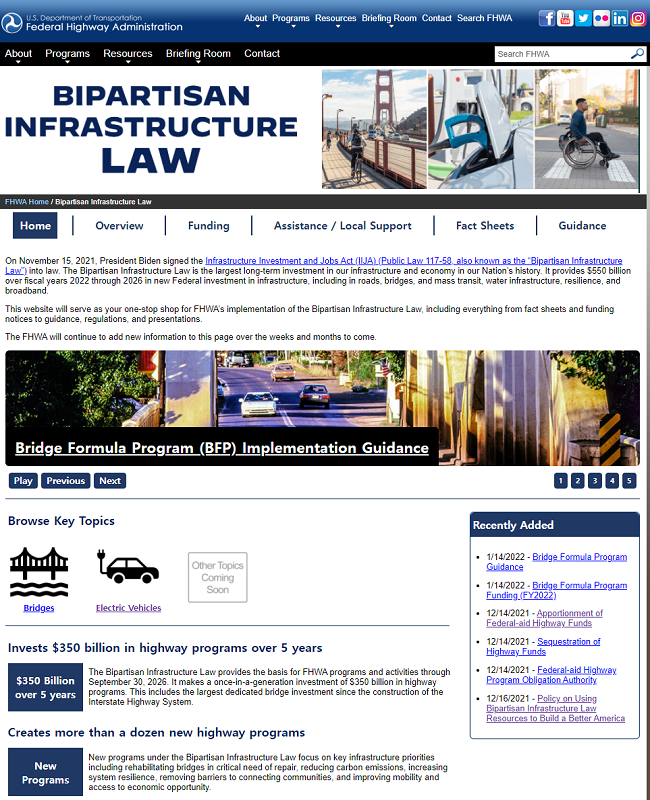 Federal Highway Administration Bipartisan Infrastructure Law Website Federal Highway Administration Bipartisan Infrastructure Law Website Nick Nigro2022-01-14T00:00:00-05:00 Federal Highway Administration Bipartisan Infrastructure Law WebsiteNick Nigro2022-01-14T00:00:00-05:00