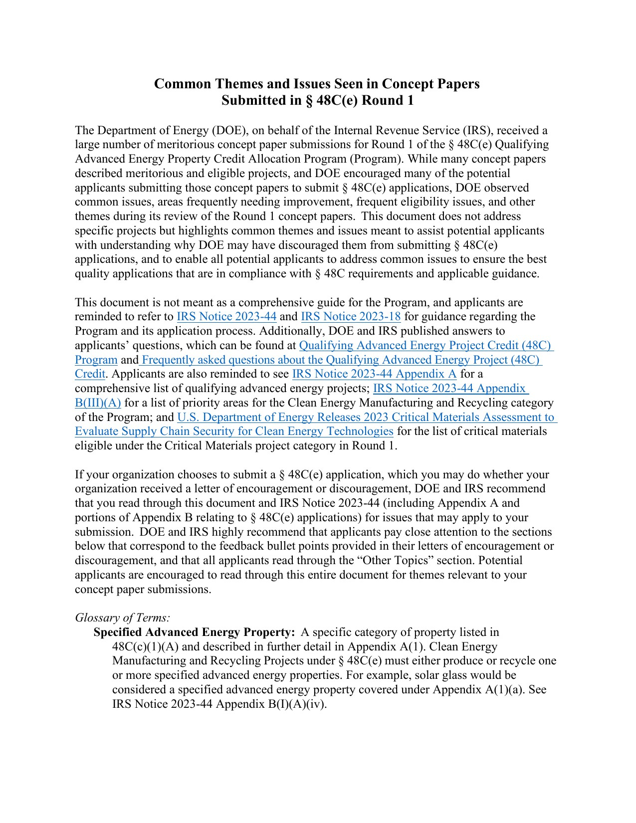 48C: Common Themes and Issues Seen in Concept Papers Submitted in 48C(e) Round 1